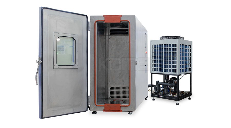 分體式結構是將試驗區域與制冷系統分開設計,這樣既方便移入移出實驗室,又充分滿足較高的試驗要求,當某一試驗需確保試驗樣品在模擬各種環境工況測試時區域無振動,而壓縮機與冷凝器是溫度箱主要振動源,利用分體式讓銅管與制冷裝置連接,使得壓縮機與冷凝風扇遠離試驗區域,有效避免振動傳遞產生。