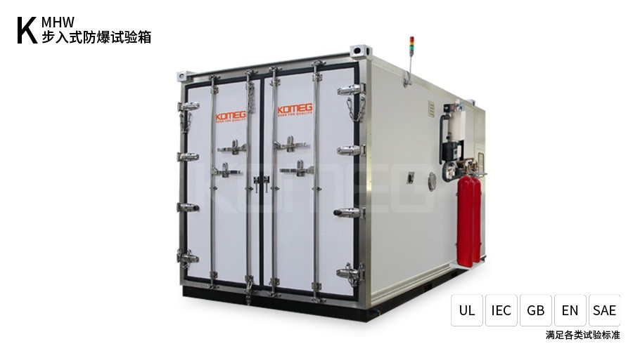 步入式防爆試驗(yàn)箱用于鋰離子電池、電池組及電池包不同氣候條件下的測試安全性能試驗(yàn)。